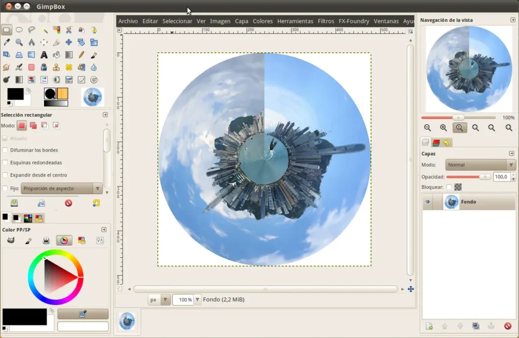 - Finalmente, ir a Filtros > Distorsiones > Coord.polares.