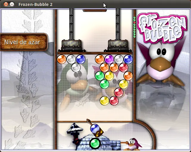 Motivado por la lista precedente, quise instalar el mejor juego: Frozen Bubble. Lo busqué en el Centro de Software de Ubuntu y desde allí lo instalé. Así se ve: