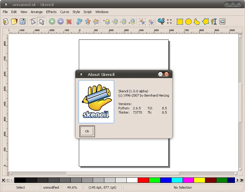 El proyecto sK1 comenzó hace 7 años como una bifurcación de Skencil. Desafortunadamente, hace 5 años el desarrollo de Skencil se detuvo. Casi todas las distribuciones excluyeron los paquetes de Skencil debido a que no es posible compliar el código del proyecto correctamente contra tk8.5/8.6