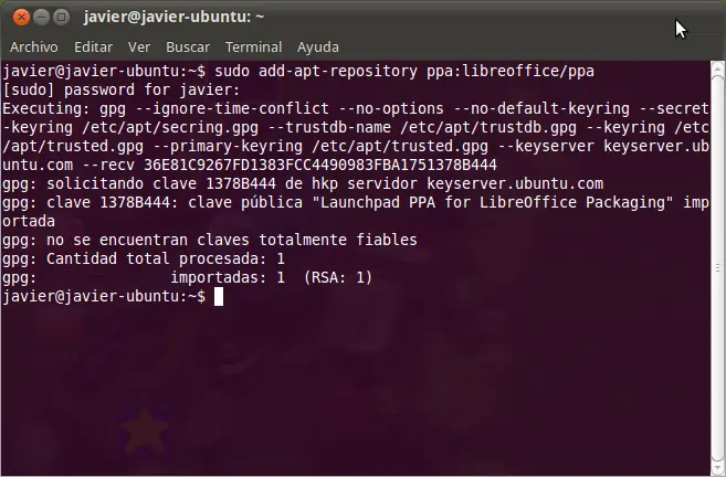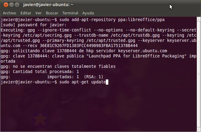 - Instalar LibreOffice con estos 3 comandos:
