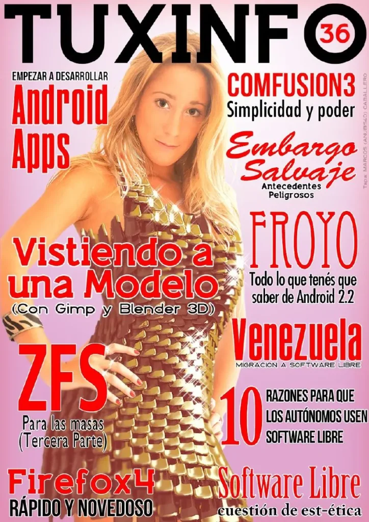 - En las páginas 26 a 28 Marcos Caballero explica como hizo para «vestir» a la modelo de la tapa de la revista usando Blender y Gimp.