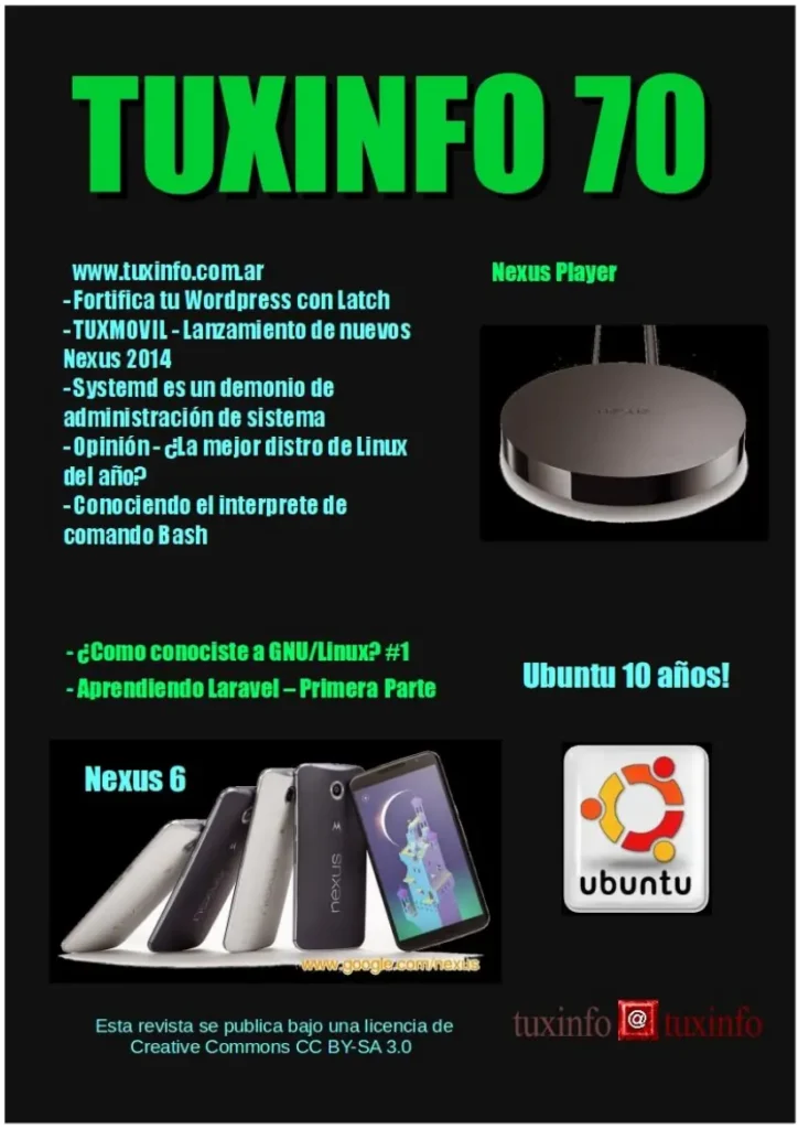 Y para cerrar, un breve resumen de las notas que encontraran en el número 70 de Tuxinfo: Systemd enemigo; Informe Chakra Linux; Aprendiendo Laravel – Primera Parte; ¿Que es Xanadu GNU/Linux?; ¿Como conociste a GNU/Linux? #1 y varias más.