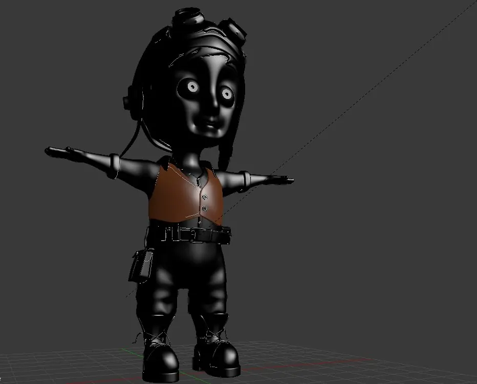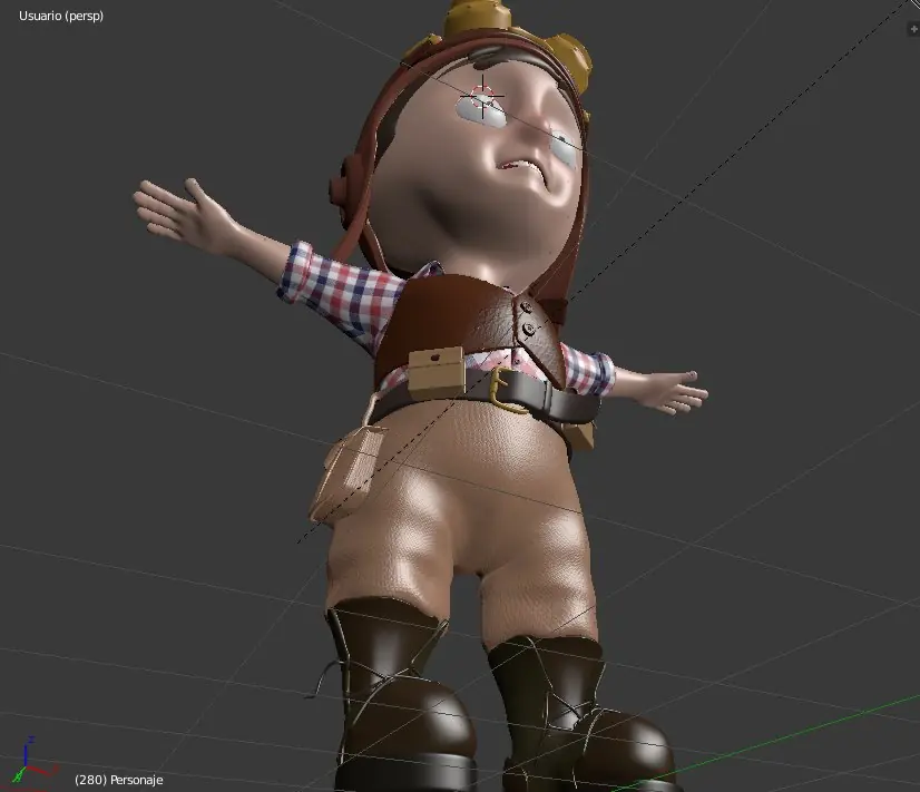 Antes de pasar estrictamente a esta quinta parte, continué con el agregado de detalles de color (como en la parte 3) y de mapeado topológico (como en la parte 4) en las botas, el casco, las antiparras y el cinturón.