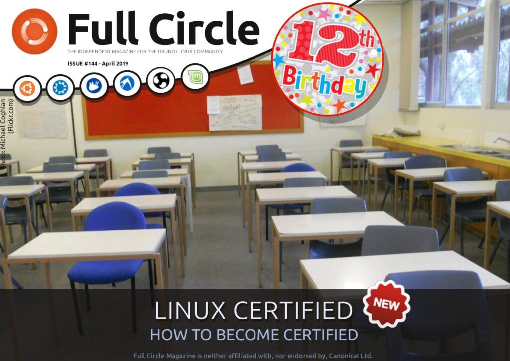 El 26 de abril se publicó la edición #144 (un PDF de 50 páginas y 5,9 MB) de Full Circle magazine. Aquí va lo que me resultó más destacable de esta edición, la del decimosegundo aniversario.