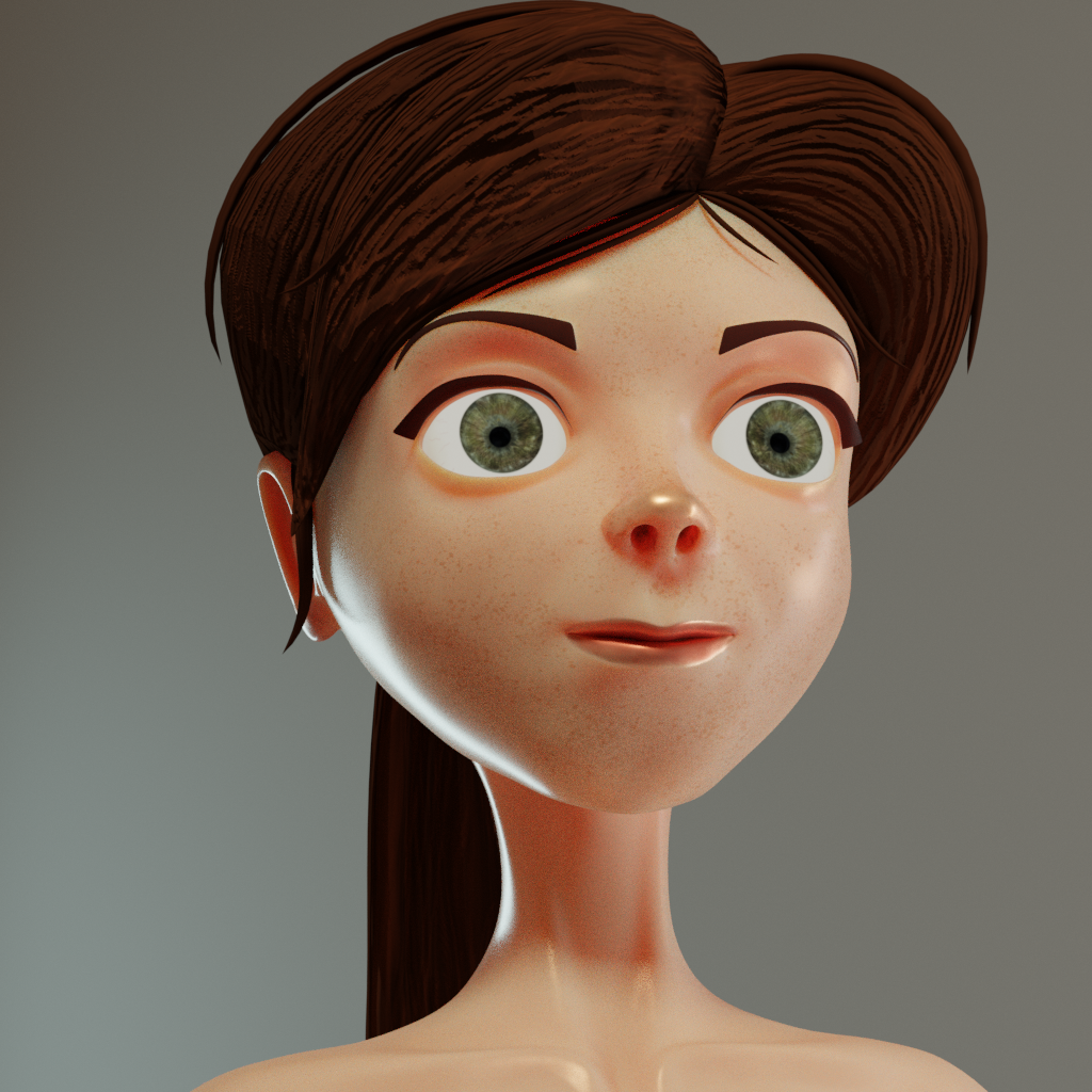 Obviamente, ya con haber agregado el Subsurface Scattering, el resultado mejora muchísimo con respecto a los renderizados hechos en partes anteriores, donde la piel estaba definida solo con la imagen de la textura: